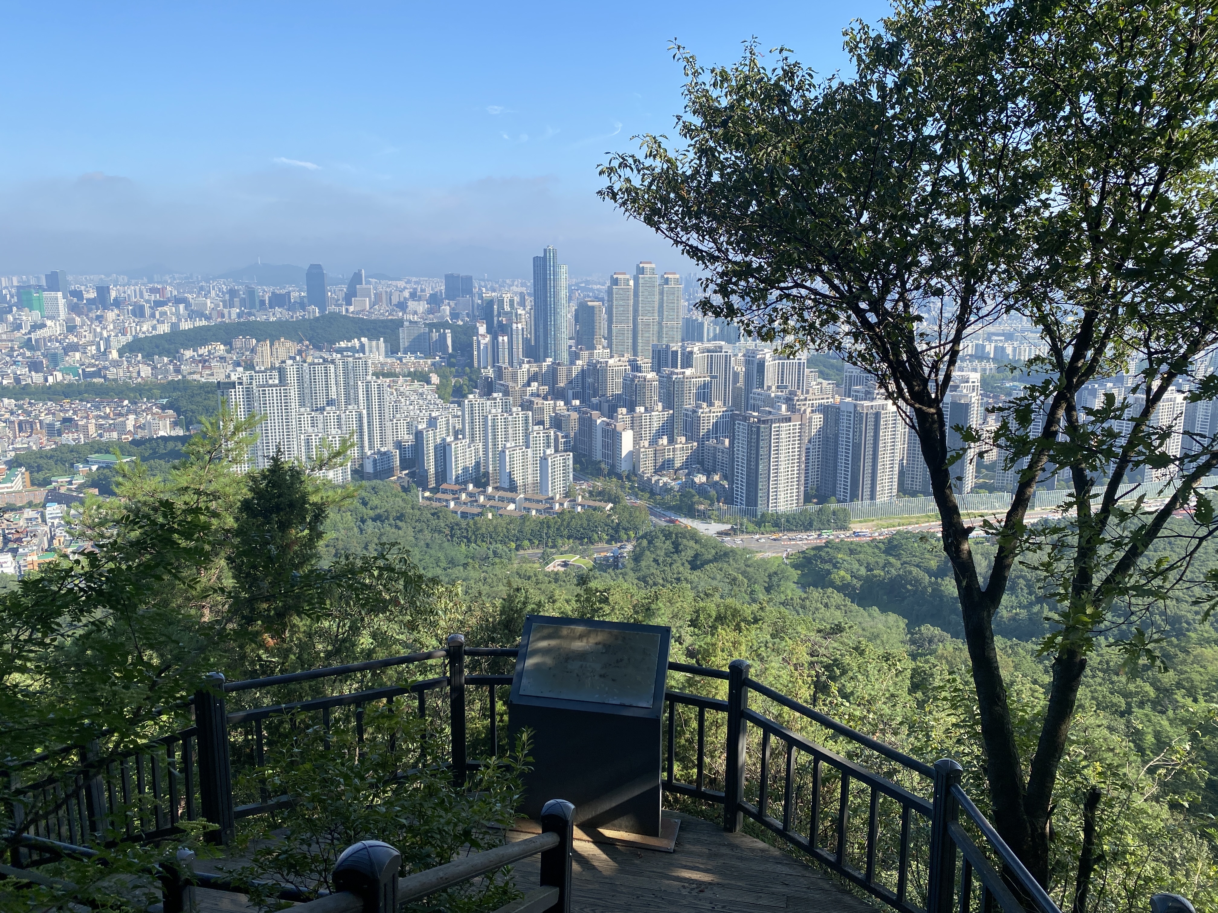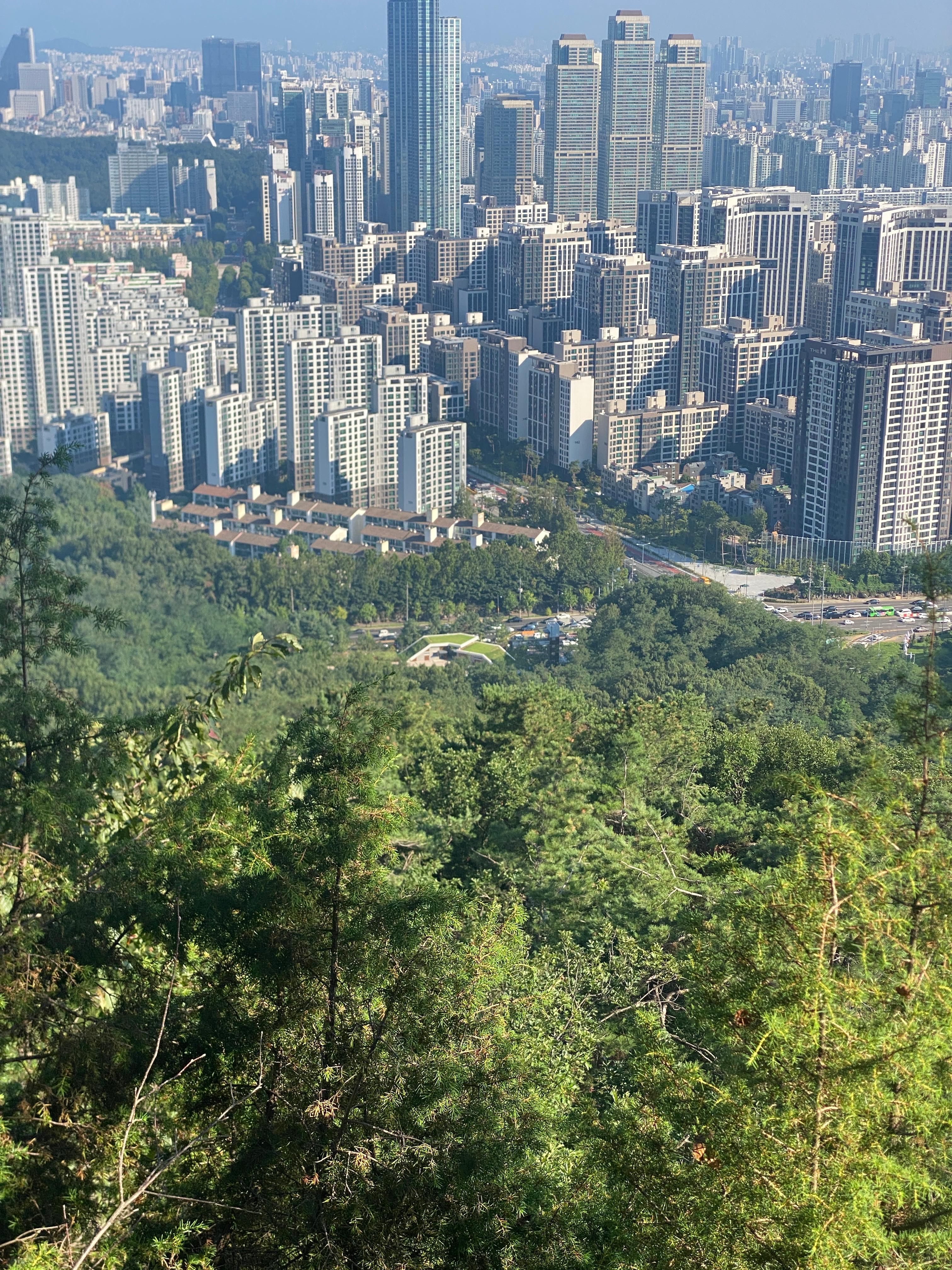 중간 조망 위치에 올라오면 강남힐링숲도 보입니다.