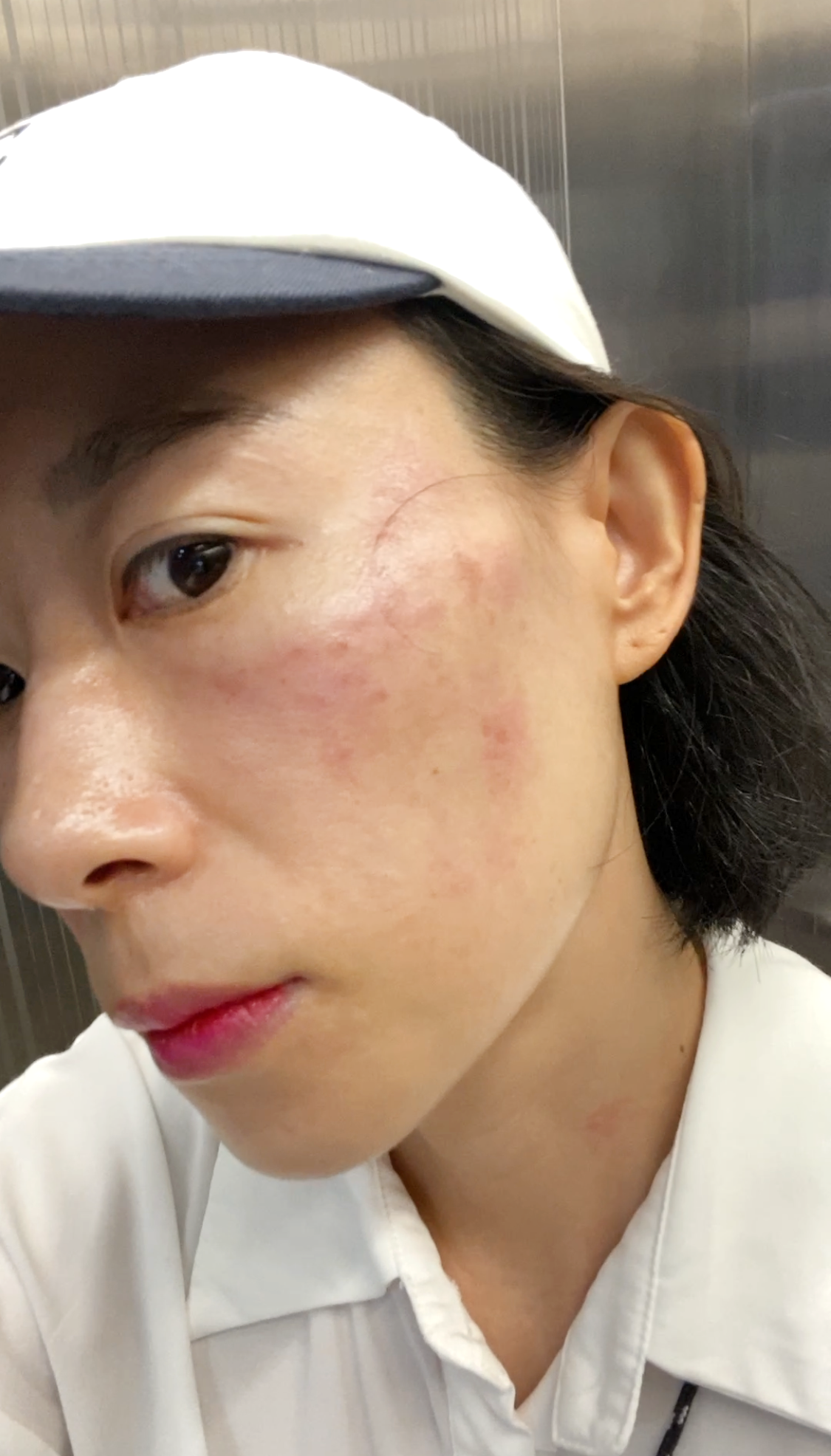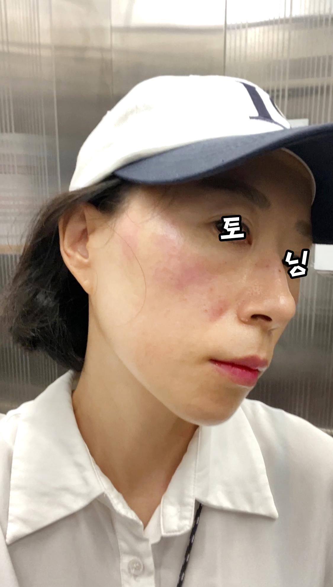 오늘은 토닝을 받기로 하고 관리에 들어갔습니다. 1회차 때는 비타민 관리 먼저 받고 레이저 토닝을 받았는데, 오늘은 레이저 토닝 먼저 받고 비타민 관리를 받았어요. 1회차 때보단 뭔가 더 강력했습니다. 마취할 정도의 레이저는 아니라서 긴장감 없이 받았어요. 관리 바로 직후엔 이 정도의 붉기가 올라옵니다. 레이저 해주시면서도 기미나 색소 침착과 같은 부위를 계속 살피면서 봐주셨어요. 1회차 때보다는 확실히 강렬했다. 다른 기미 부위보다 짙은 기미 부위는 딱지가 떨어지는 관리를 날씨가 선선해지면 하기로 했어요.