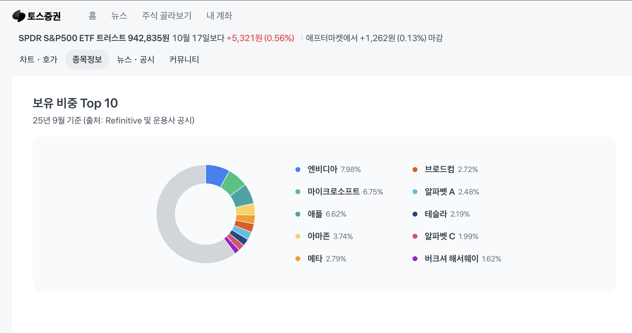 위 기업들은 지수 내에서 비중이 크고 시장을 주도하는 ‘메가캡 기업’입니다. 예컨대 상위 10개 기업만으로도 지수 전체에 상당한 영향력을 가지고 있어요. 한국 투자자 입장에서도 국내 주식과는 다른 글로벌 성장 스토리가 있고, ‘미국 시장에 투자한다’고 할 때 자연스럽게 이 기업들이 떠오르는 경우가 많습니다. 또한, 지수를 추종하는 ETF(예: SPDR S&P 500 ETF Trust (티커: SPY) 등)를 통해 이 기업들에 간접적으로 투자하기 때문에 개별 종목으로도 자주 언급됩니다.