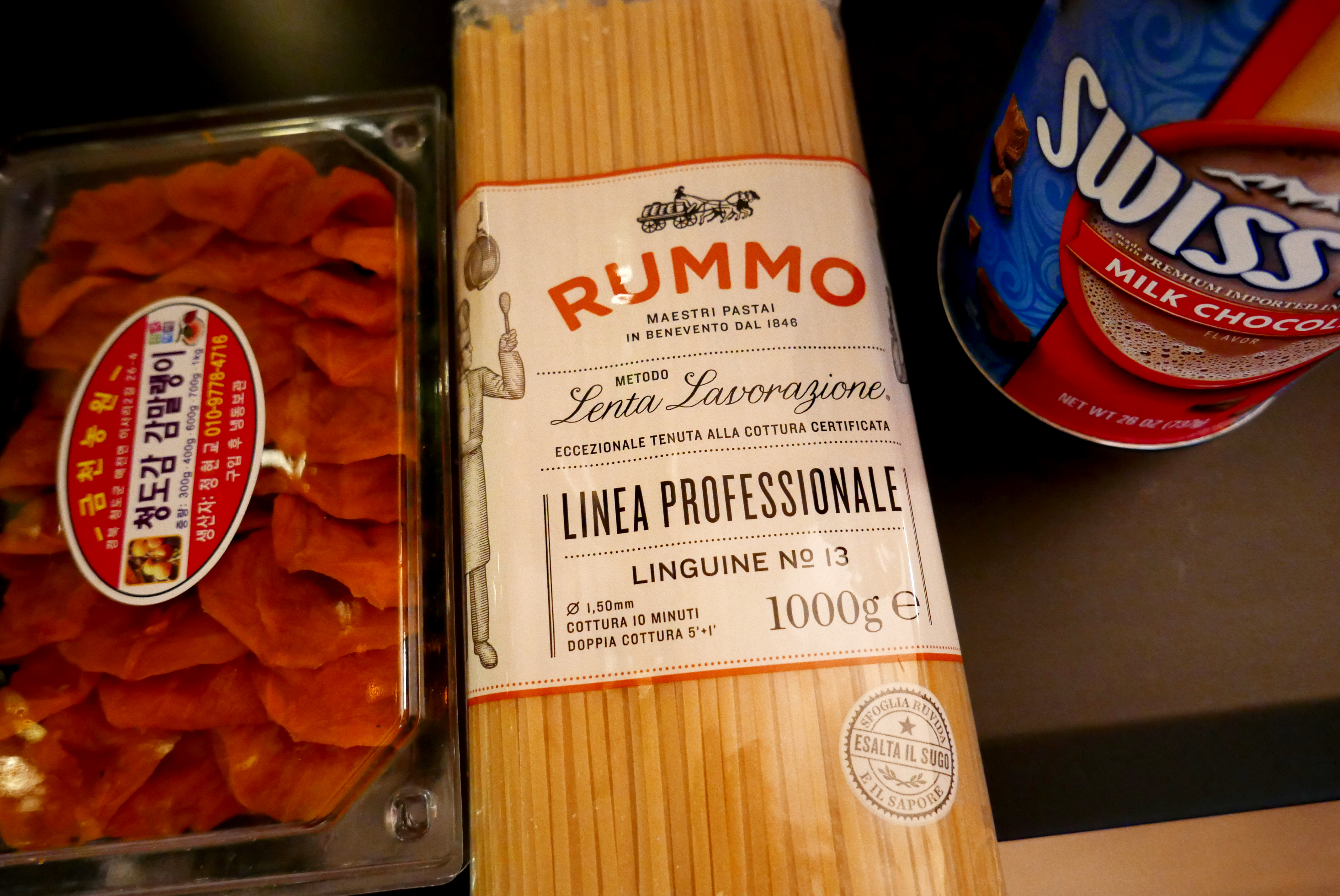 특히 ‘조금 더 맛있게’, ‘조금 더 기분 좋게’라는 욕망이 자연스럽게 피어나는 계절에, 이 조합은 취향을 확장시키는 데 충분합니다. 스위스미스 리치초콜릿 코코아의 묵직한 달콤함은 하루의 끝을 부드럽게 감싸고, 룸모 링귀네로 만드는 파기름 파스타는 허기를 단번에 안정시키는 따뜻한 기술처럼 기능합니다. 감말랭이와 샤인머스켓은 디저트와 간식을 넘어서 시즌을 대표하는 결이 좋은 재료들로, 한 번에 먹어도 좋고 테이블에 함께 배치해도 그림이 됩니다.