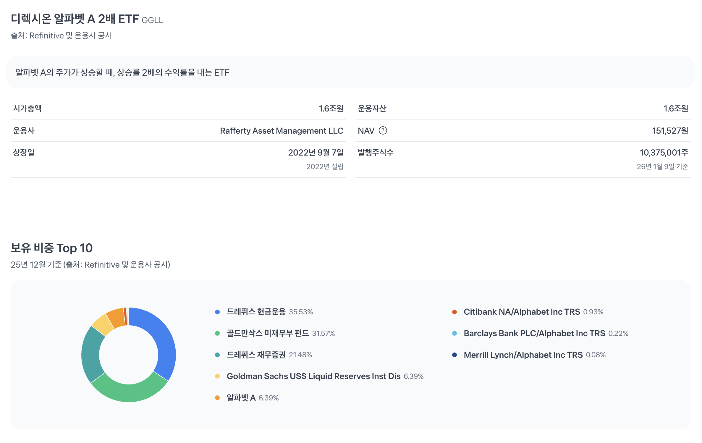 작년에 알파벳 A를 직접 매수해 예상보다 빠른 수익을 경험한 뒤, 한 차례 수익 실현 후 GGLL로 전환했습니다. 실제로 알파벳 A가 오를 때마다 GGLL이 즉각적으로 반응하는 흐름을 체감하고 나니, ‘구조를 이해한 투자’가 얼마나 중요한지 다시 느끼게 됩니다.