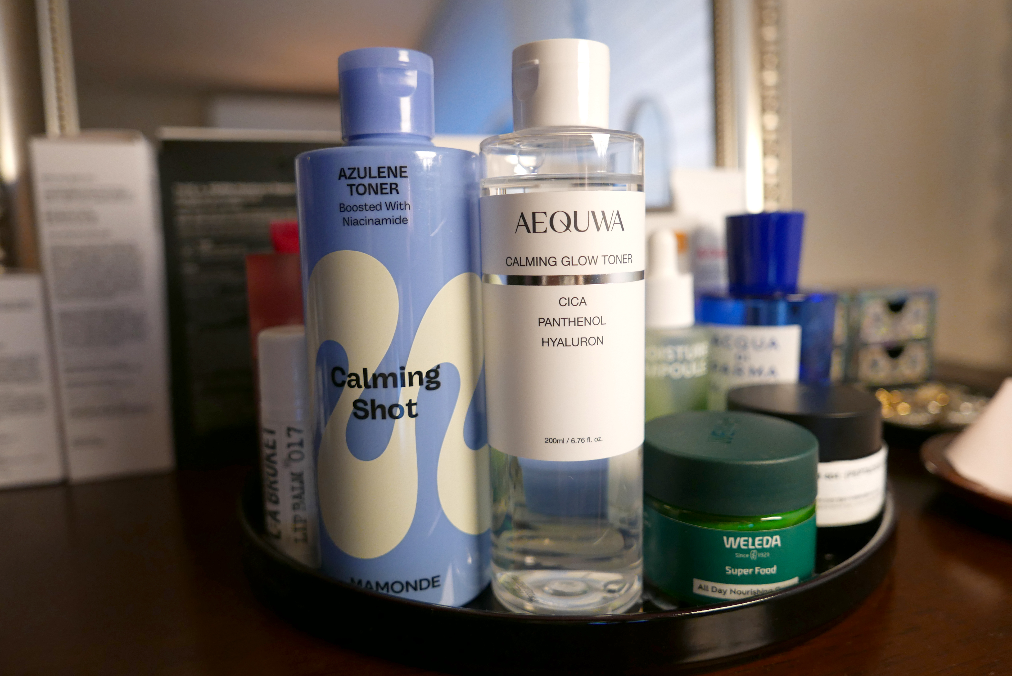 카밍 글로우 토너와 카밍 아줄렌 세럼.